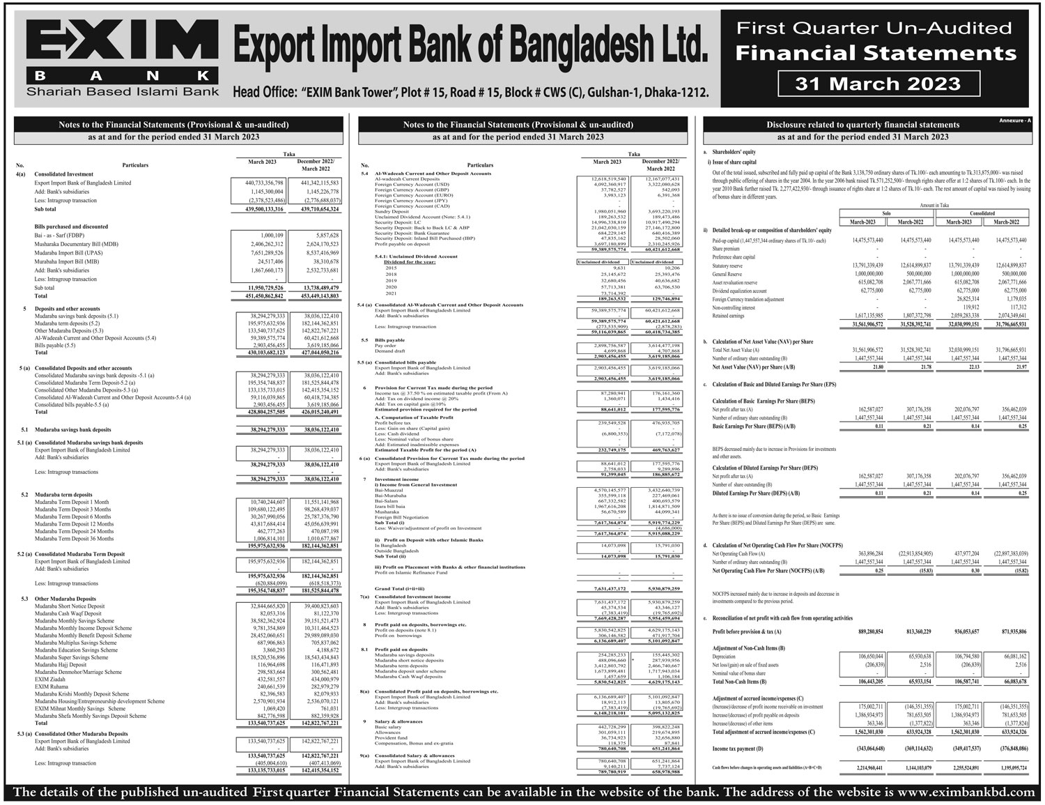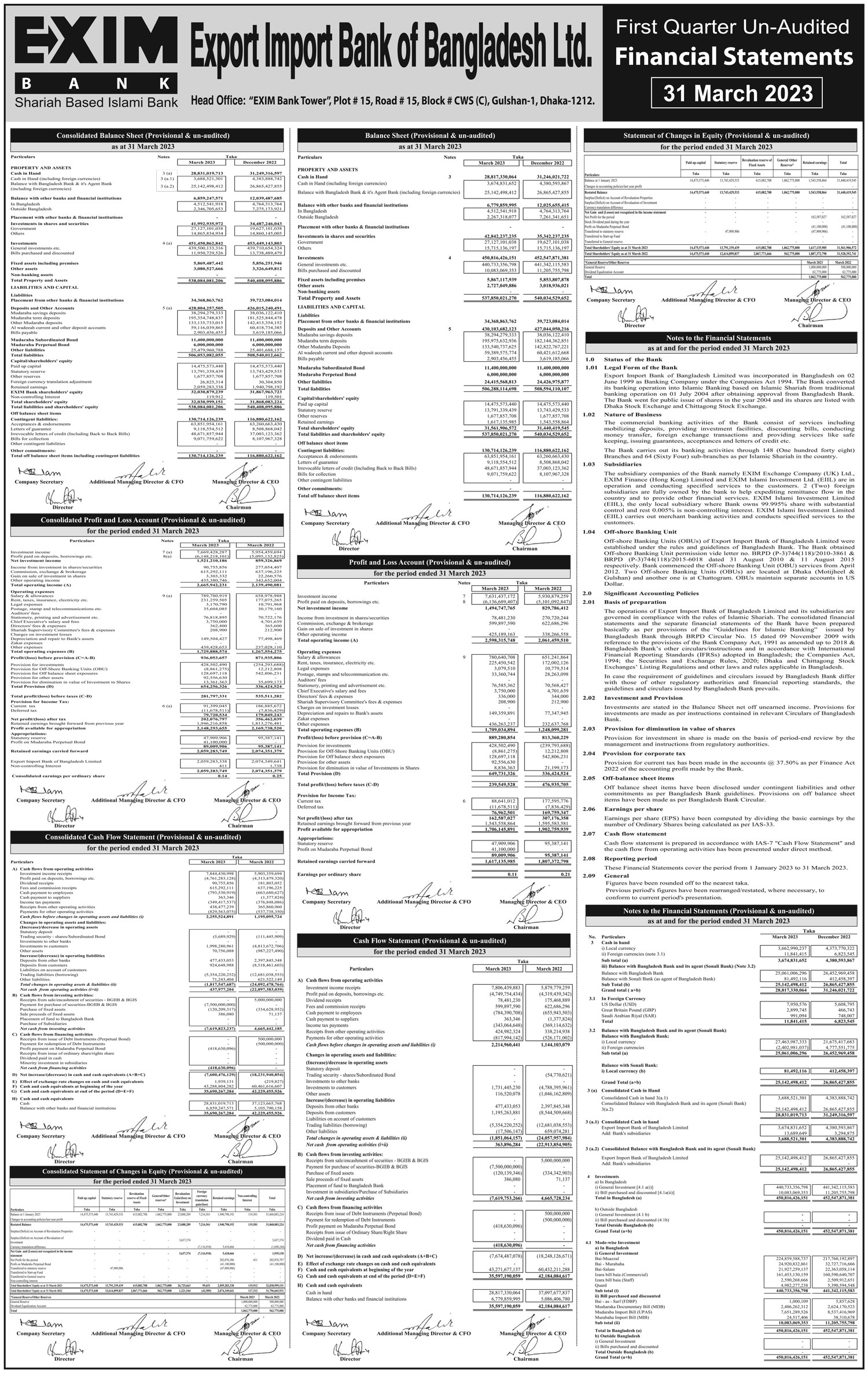 Q1 Un-audited Financial Statements of Exim Bank