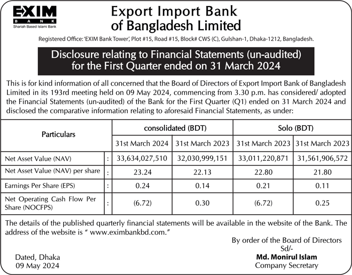 Half Yearly Un-audited Financial Statements of EXIM Bank