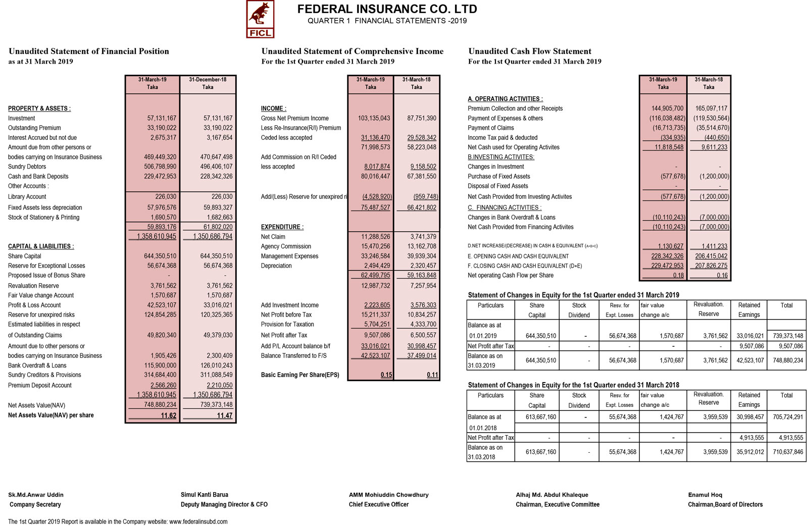 Q1 Financial Statements (Un-audited) of Federal Insurance Co. Ltd