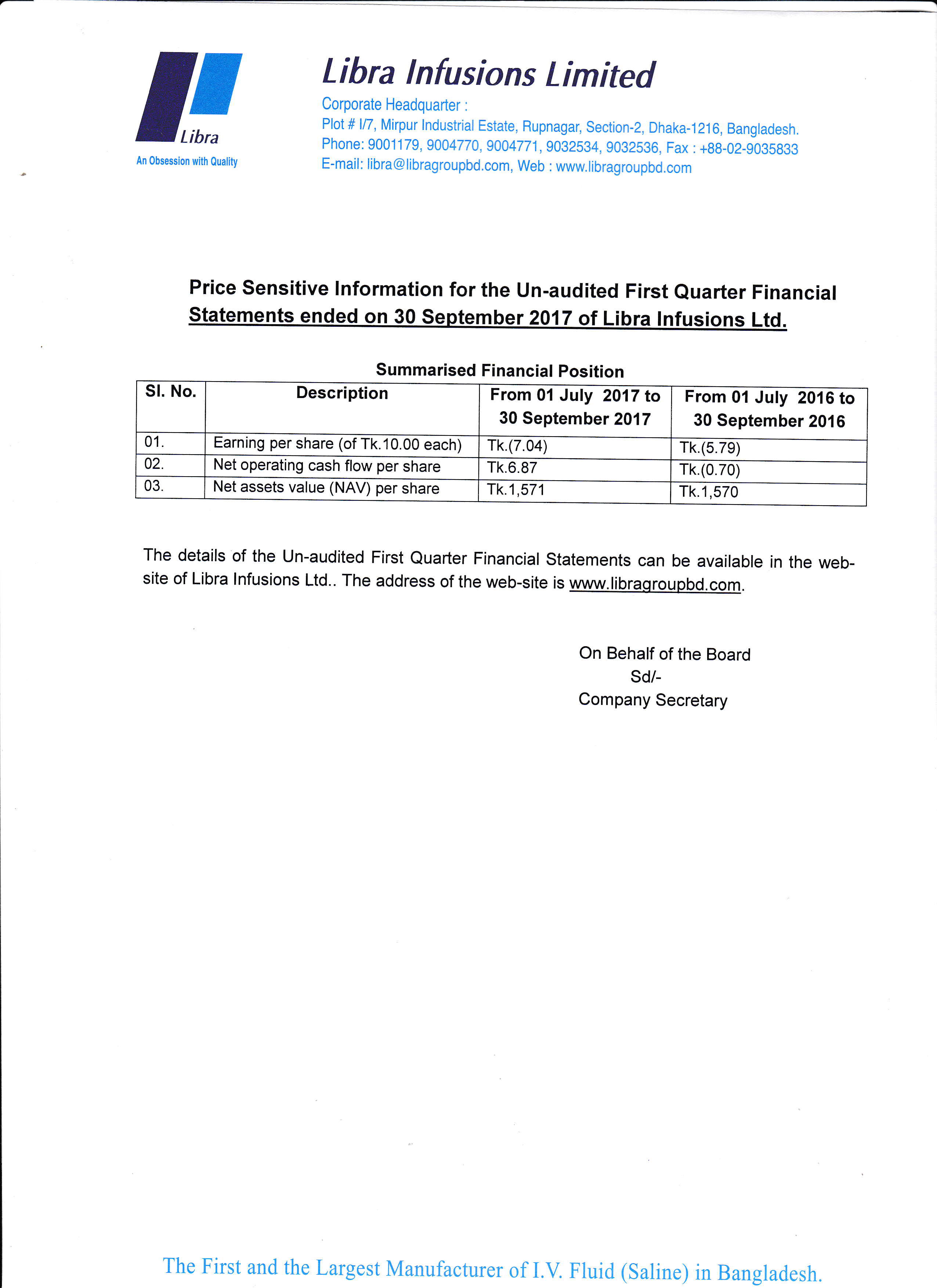 Un-audited Q1 Financial Statements of Libra Infusions Limited