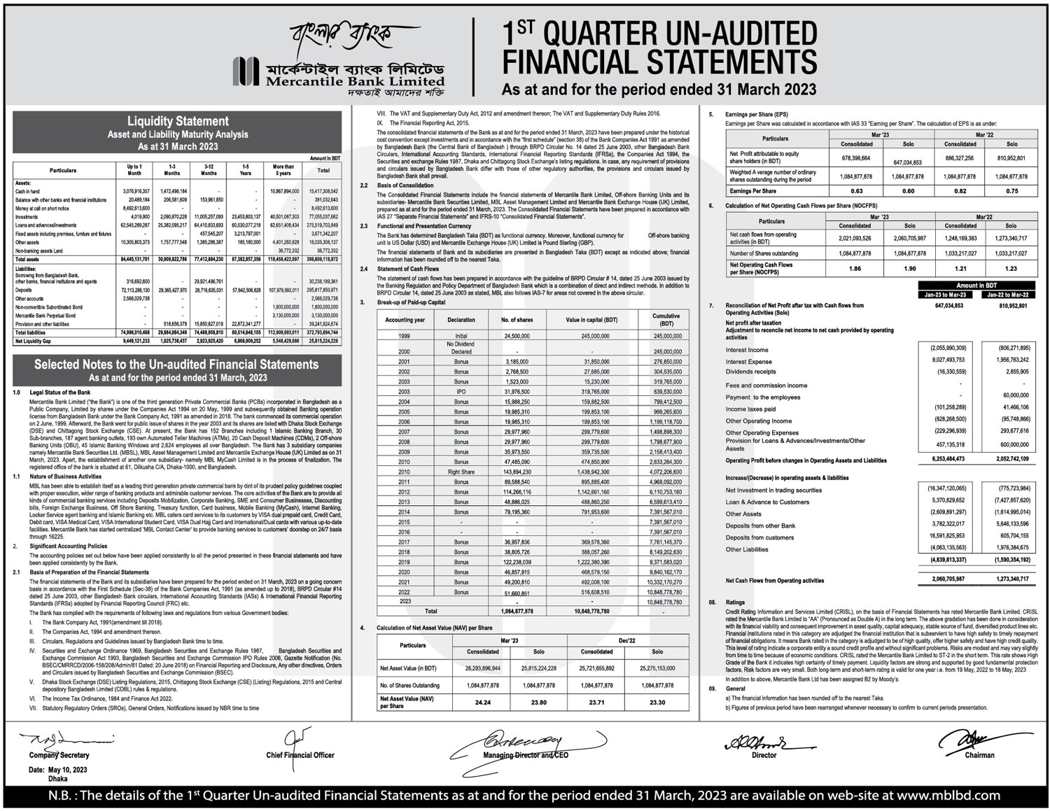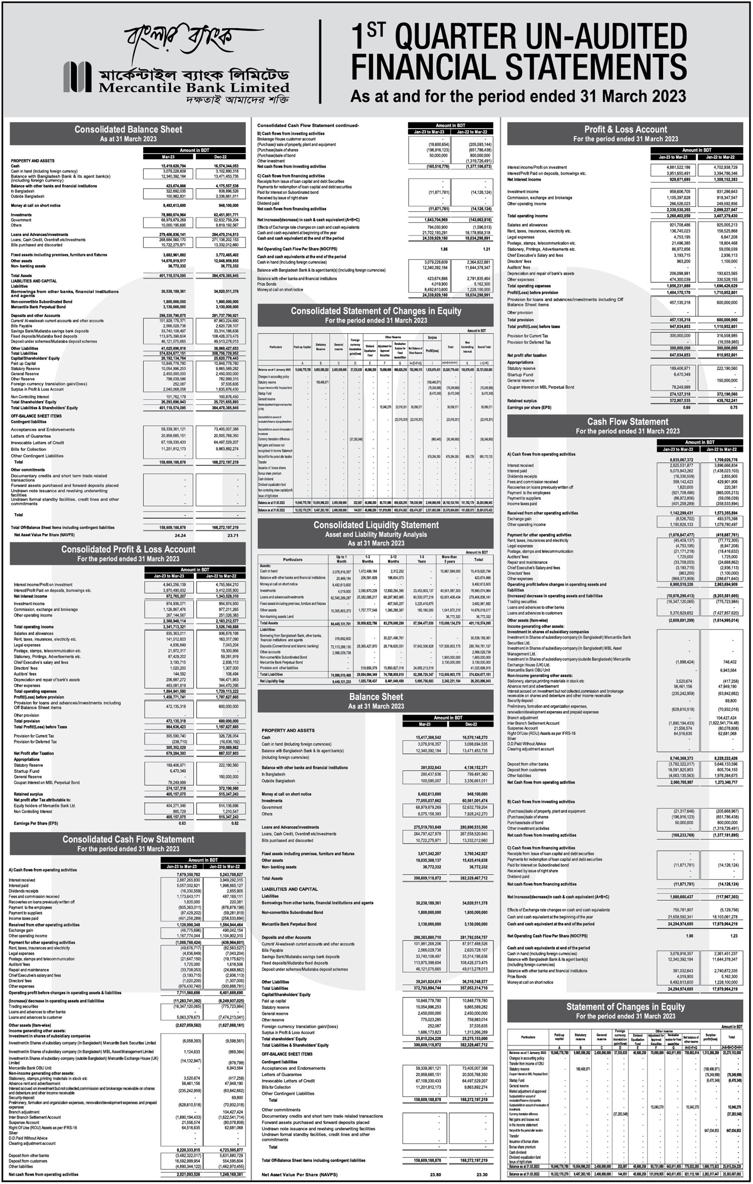 Q1 Un-audited Financial Statements of Mercantile Bank Limited