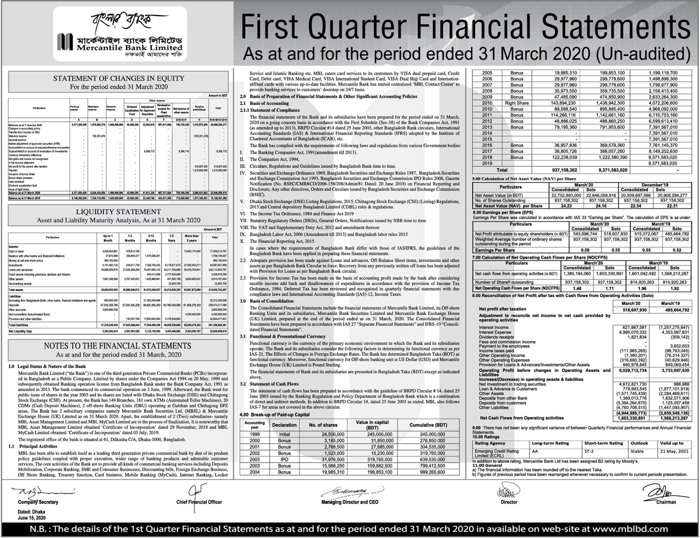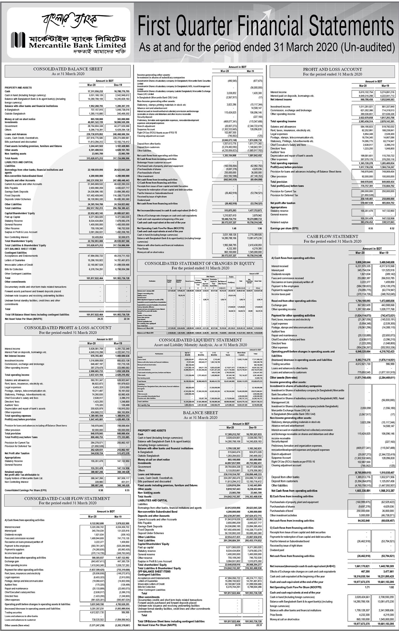 Q1 (Un-audited) Financial Statements of Mercantile Bank Limited