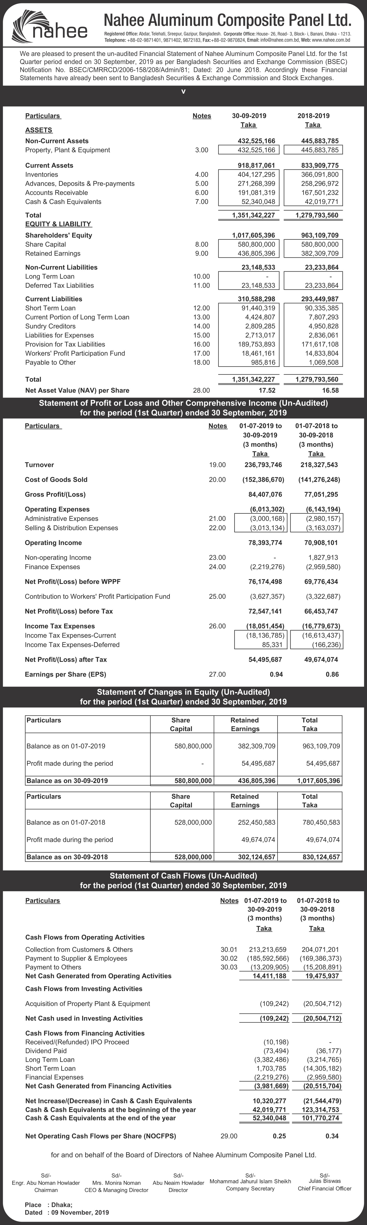 Q1 Un-audited Financial Statements of Nahee Aluminum Composite Panel Ltd.