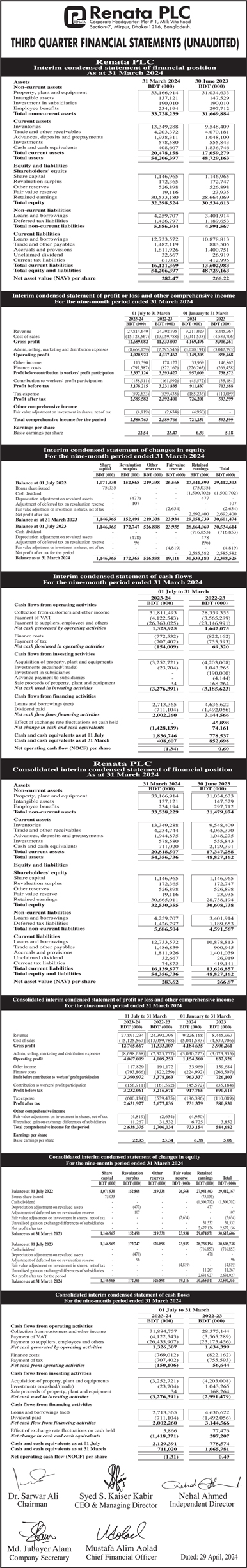 Half Yearly (Q2) Financial Statements (Unaudited) of Renata Limited