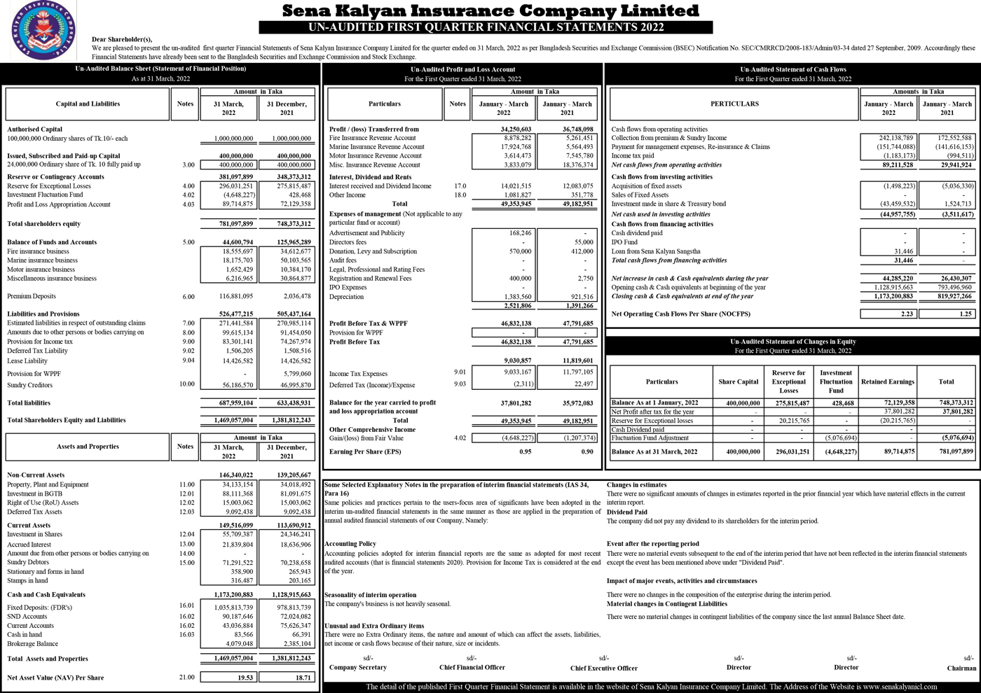 Q1 (Un-audited) Financial Statements of Sena Kalyan Insurance Company Ltd.