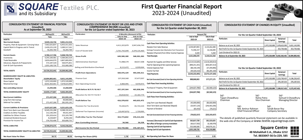 Q1 Un-audited Financial Statements of Square Textile PLC