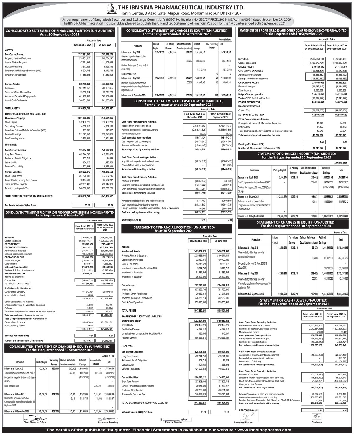 Q1 Un-audited Financial Statements of The IBN SINA Pharmaceutical Industry Ltd.