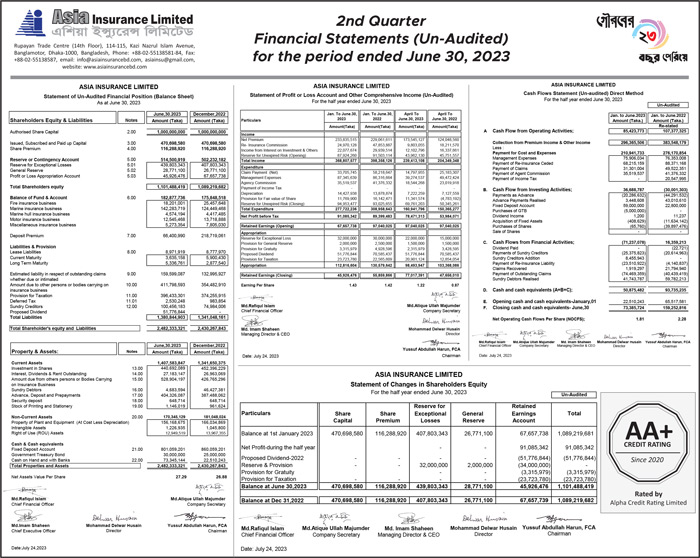 Q2 Financial Statement (Un-audited) of Asia Insurance Limited