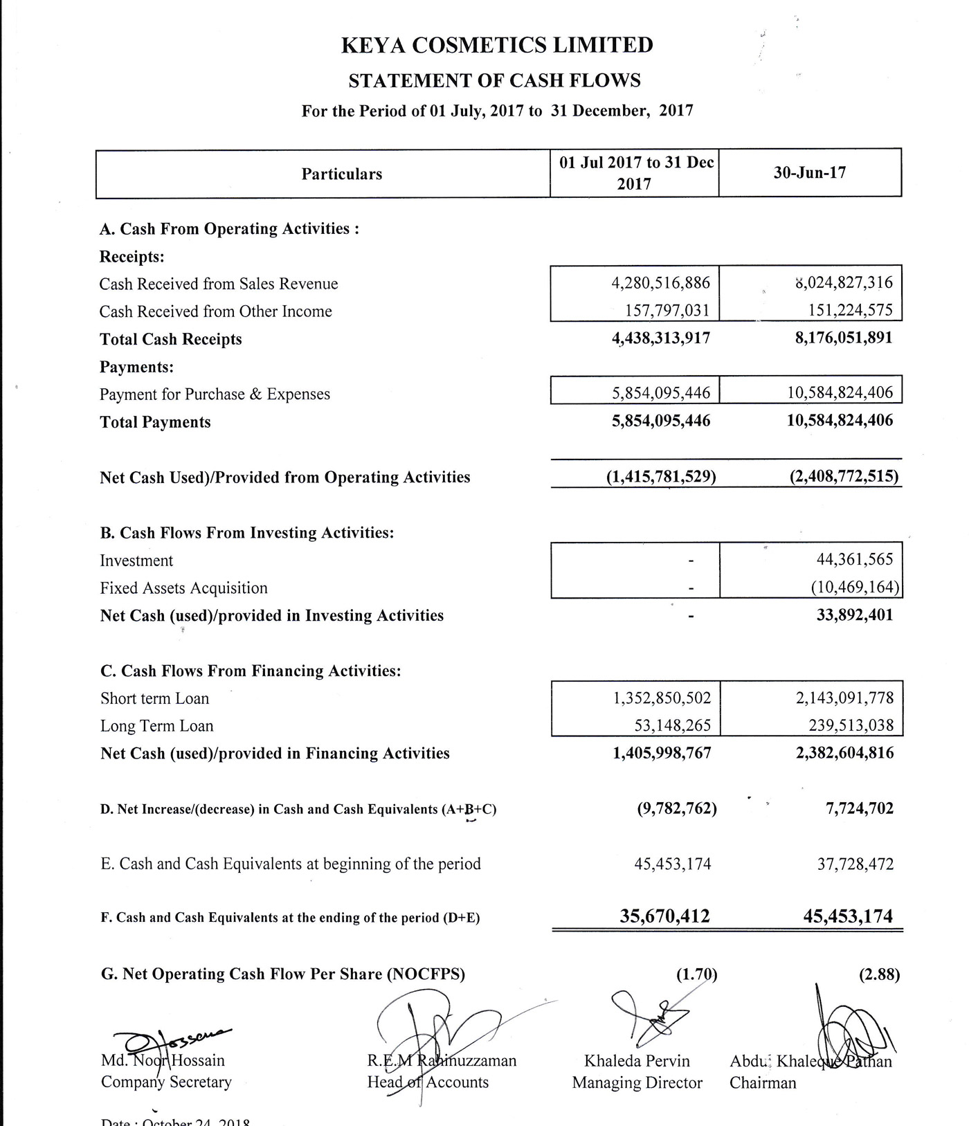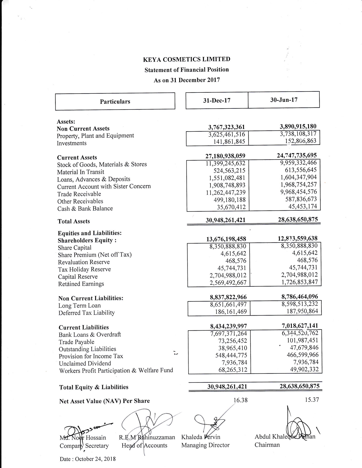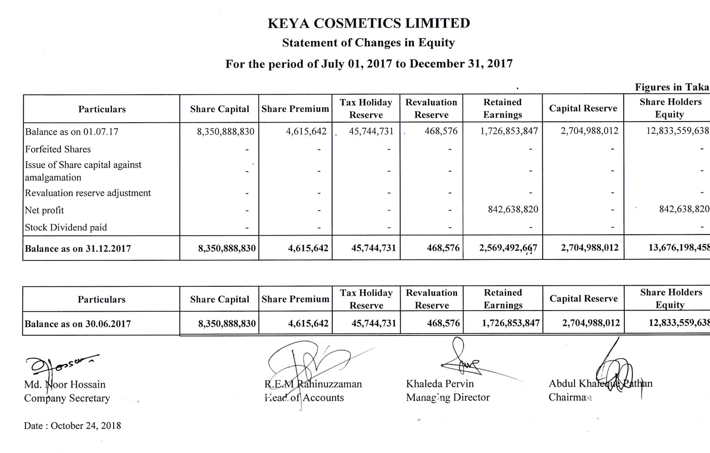 Q2 Financial Statements of Keya Cosmetics Ltd.