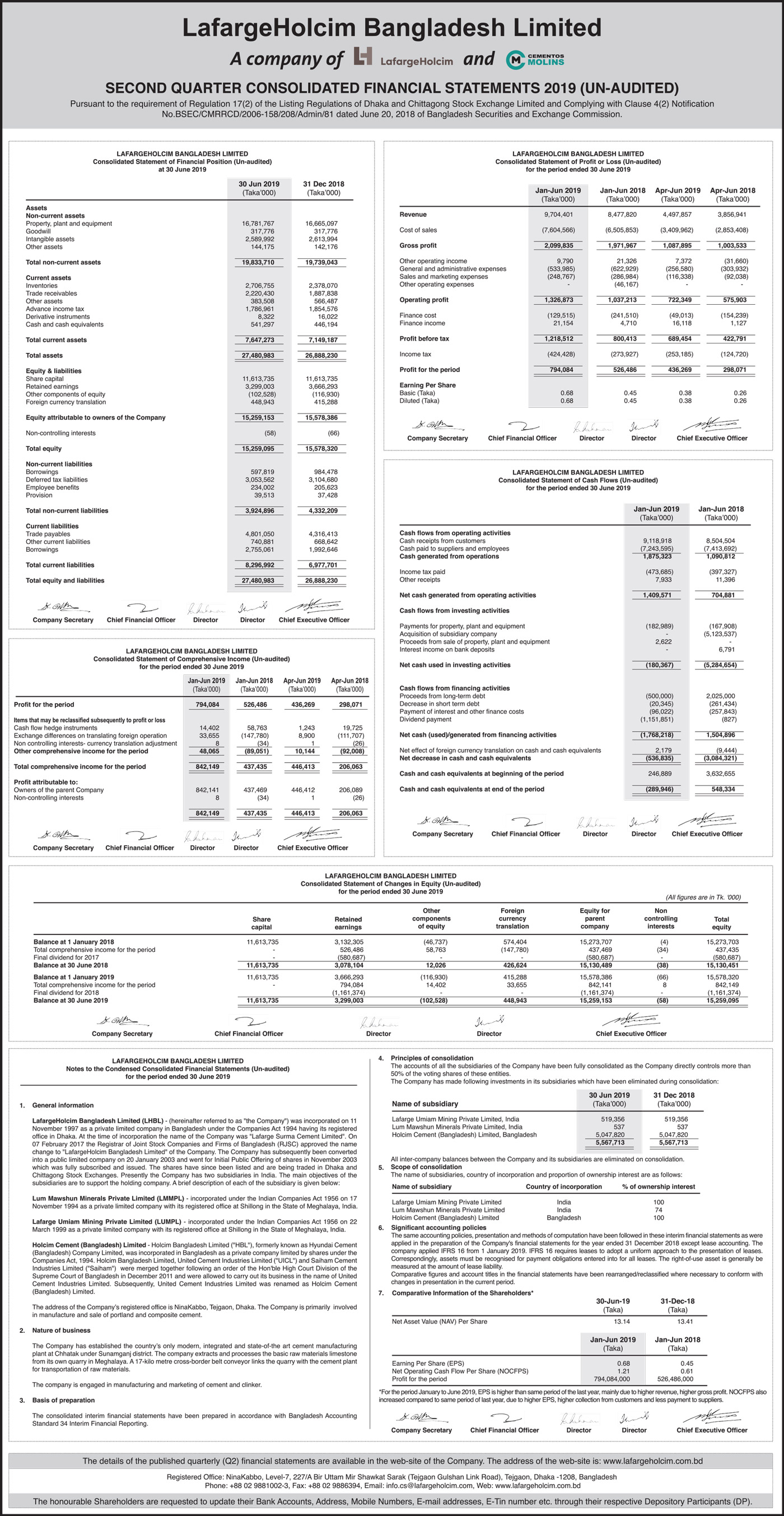 Q2 Consolidated Financial Statements of LafargeHolcim Bangladesh Limited