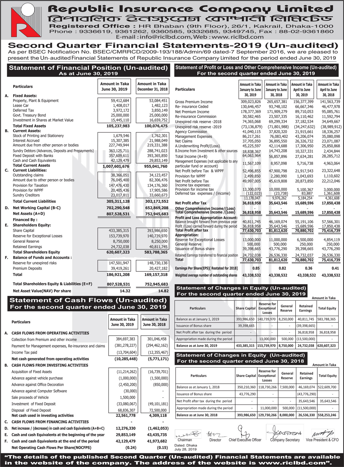 Q2 Financial Statements of Republic Insurance Company Limited