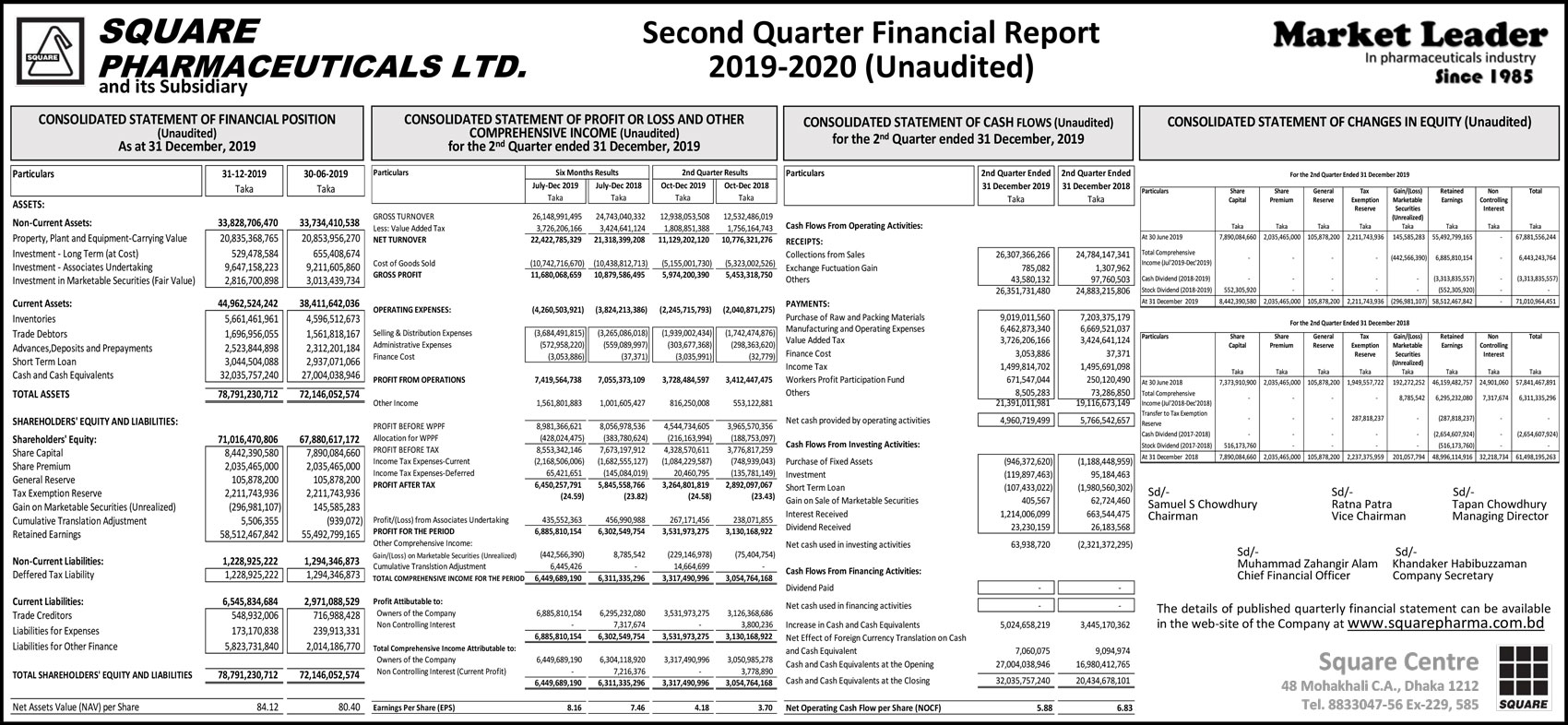 Q2 Financial Statements of Square Pharmaceuticals Ltd