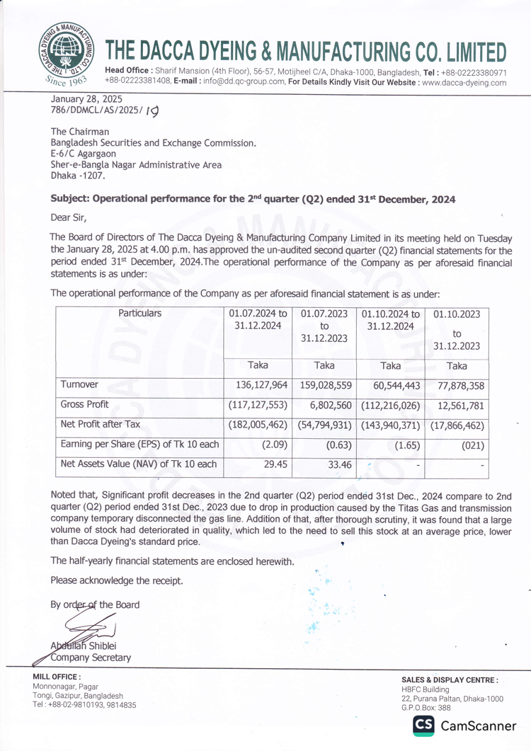 Q2 Financial Statements of The Dacca Dyeing & Manufacturing Co. Limited