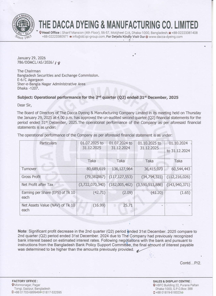 Q2 Financial Statements of The Dacca Dyeing & Manufacturing Co. Ltd.