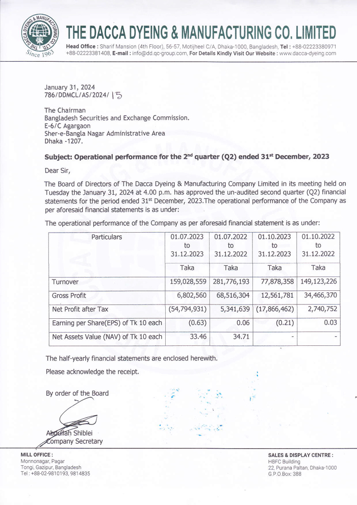 Q2 Financial Statements of The Dacca Dyeing & Manufacturing Co.Ltd
