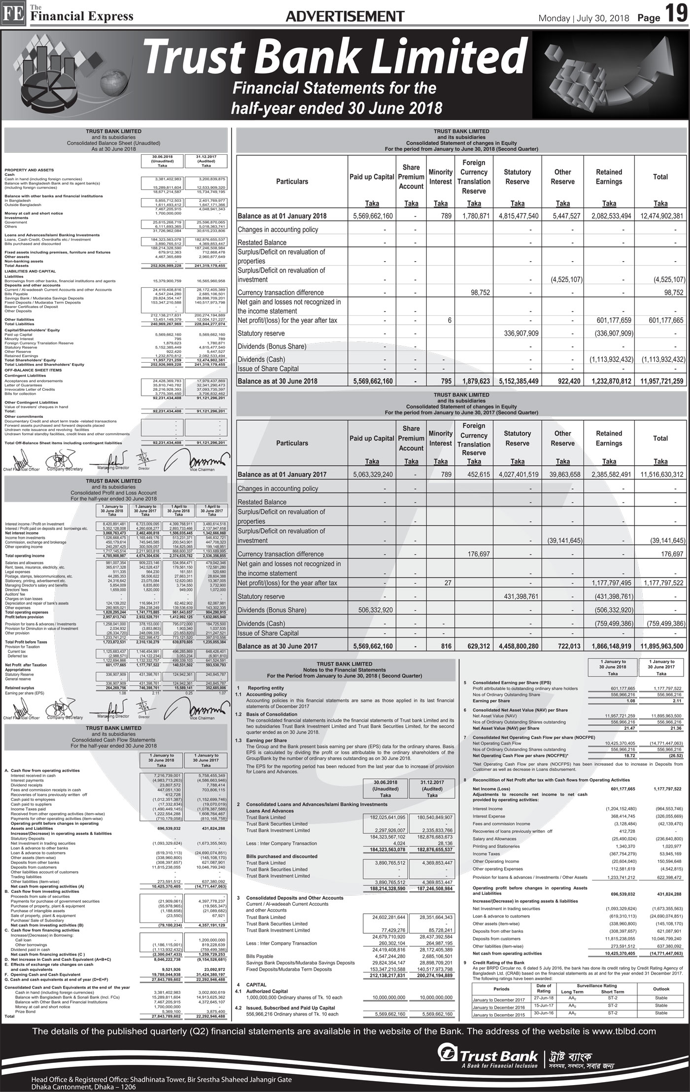 Q2 Unaudited Financial Statements of Trust Bank Limited