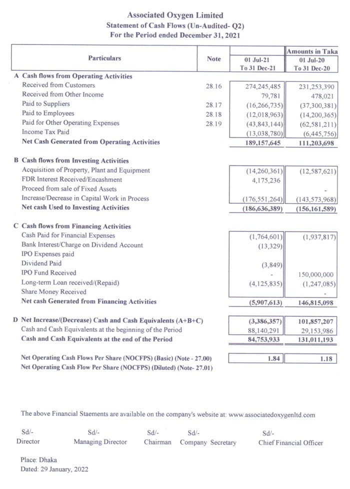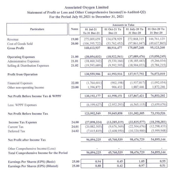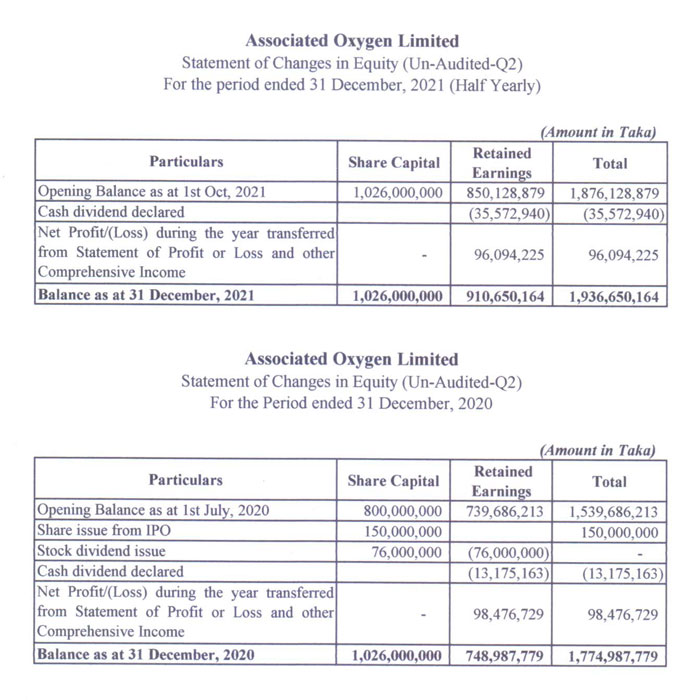 Q2 Financial Statements (Un-audited) of Associated Oxygen Limited