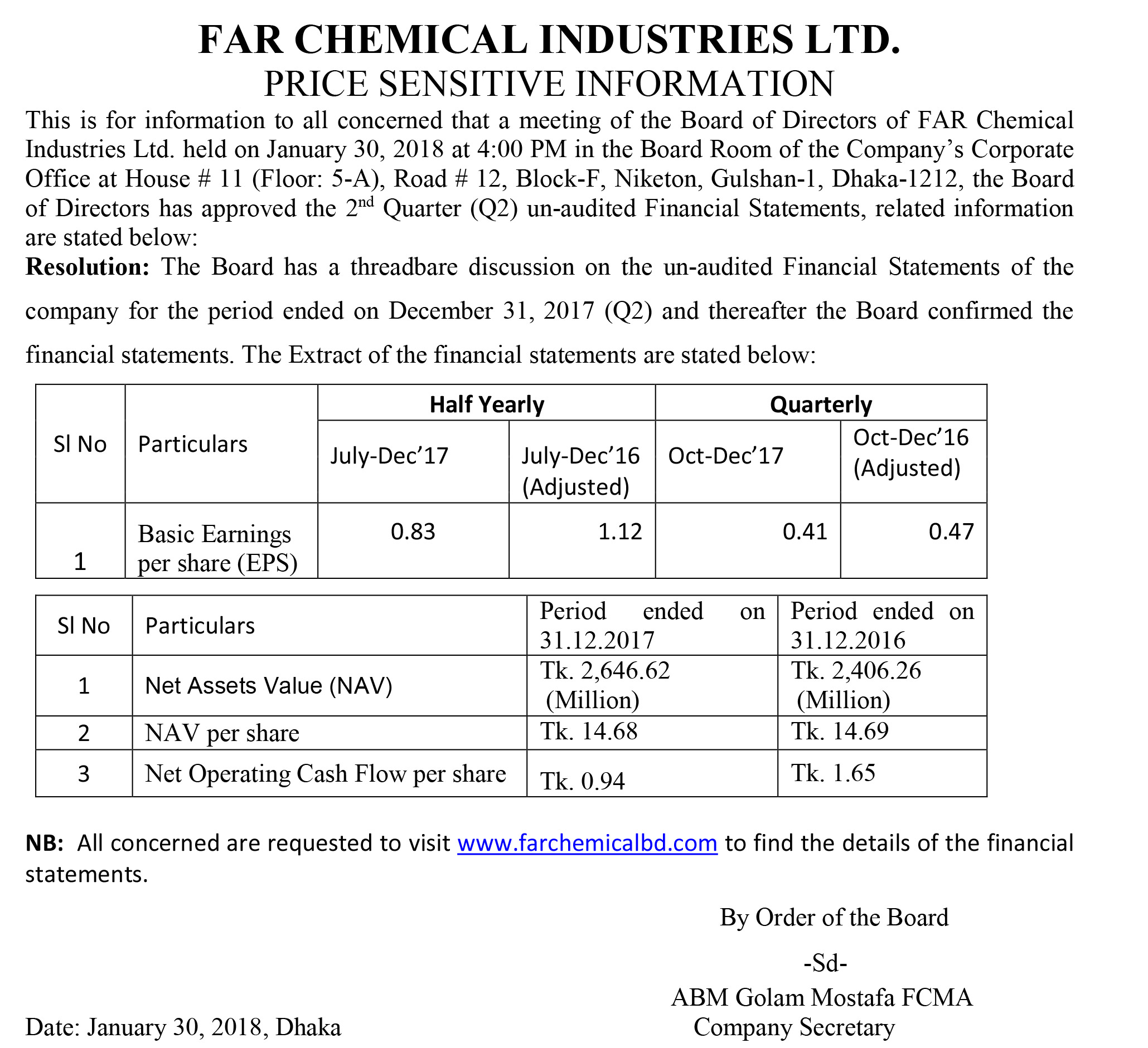 Q2 Financial Statements (Un-audited) of Far Chemical Industries Ltd.