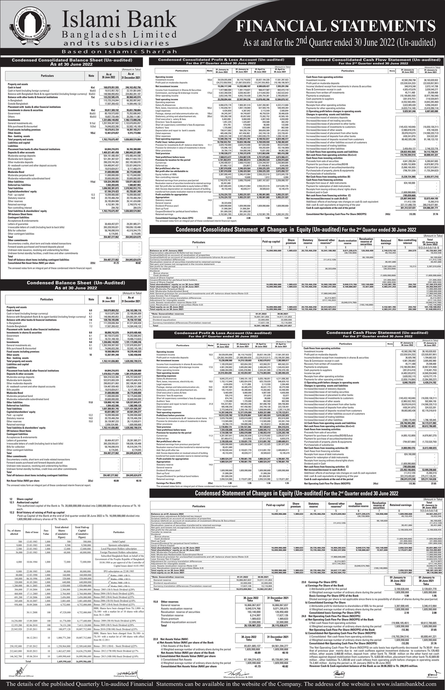 Q2 Financial Statements (Un-audited) of Islami Bank