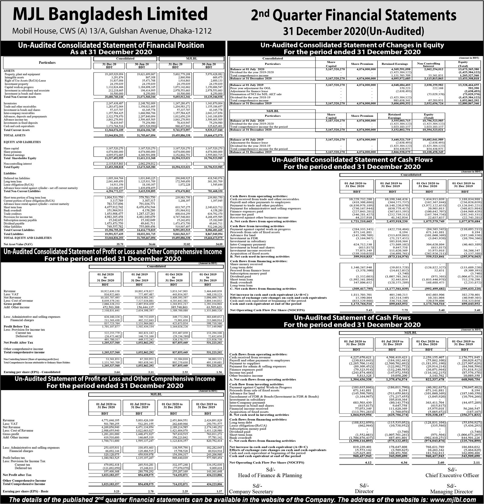 Q2 Financial Statements (Un-audited) of MJL Bangladesh Limited