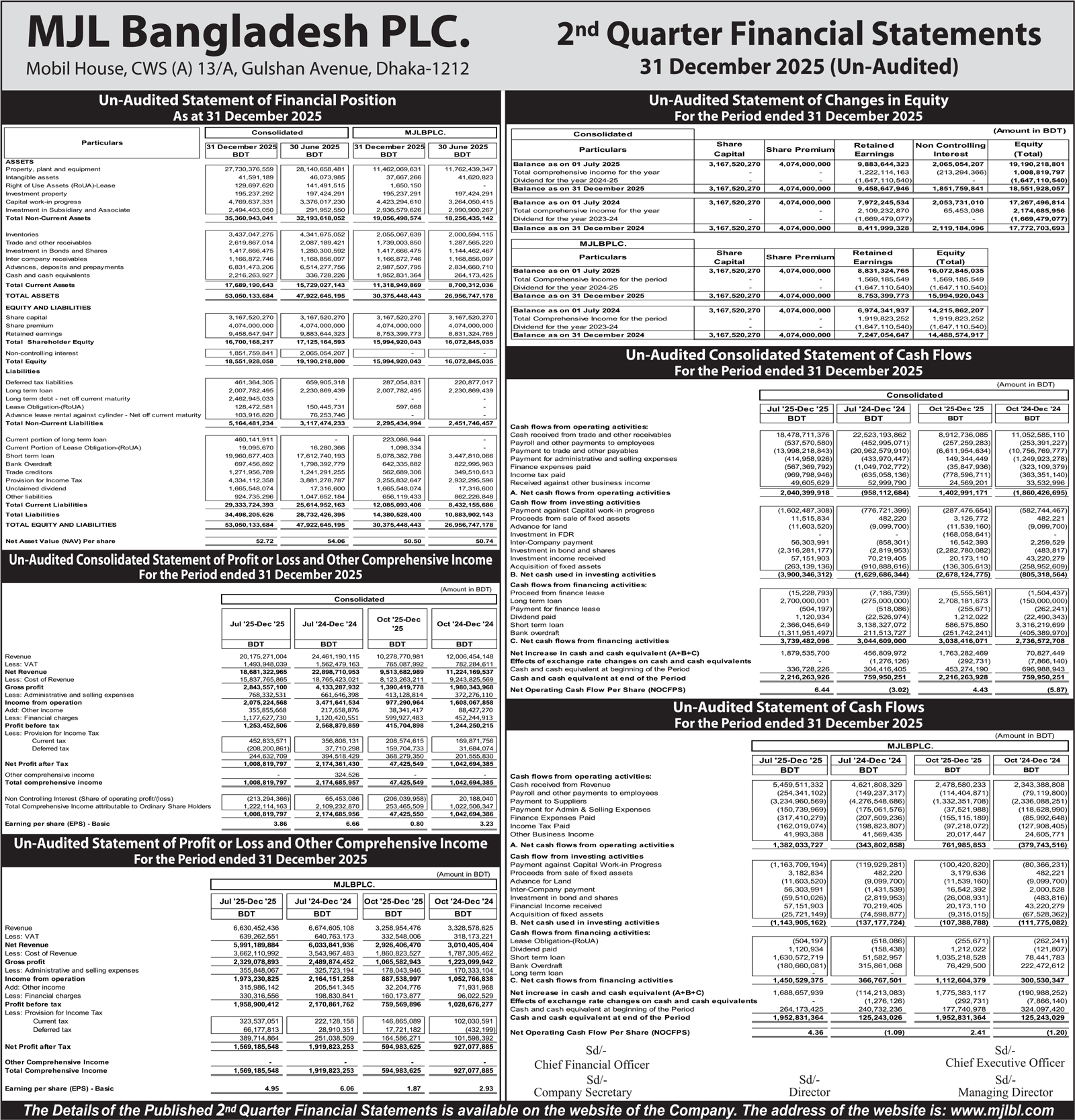 Q2 Financial Statements (Un-audited) of MJL Bangladesh Limited