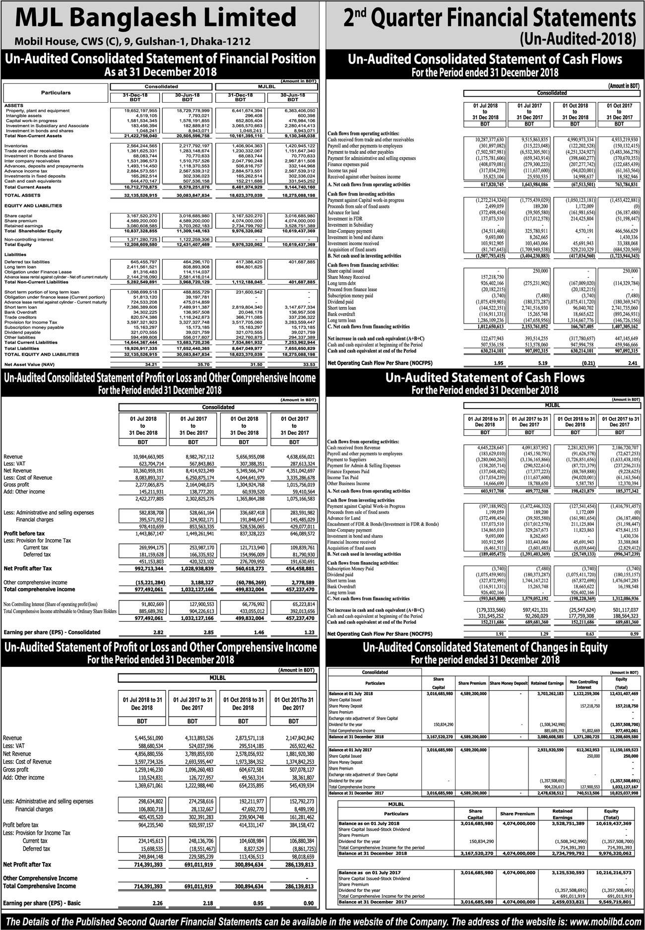 Q2 Financial Statements (Un-audited) of MJL Bangladesh Limited
