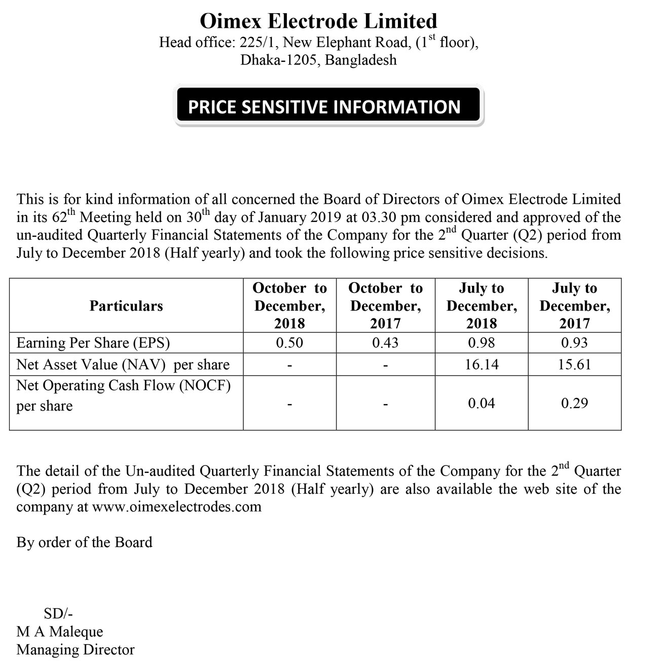 Q2 Financial Statements (Un-audited) of Oimex Electrode Limited