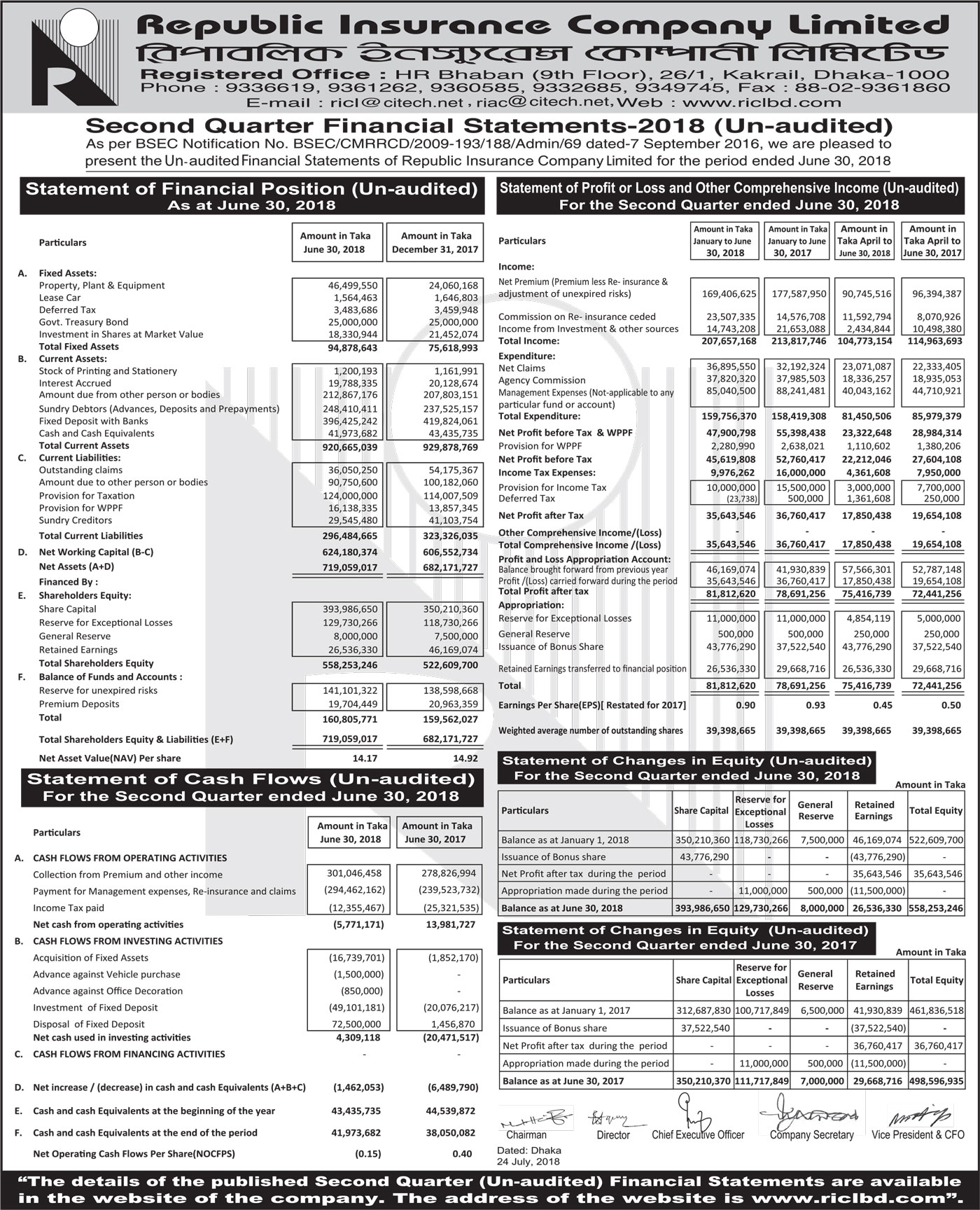 Q2 Financial Statements (Un-audited) of Republic Insurance Company Limited