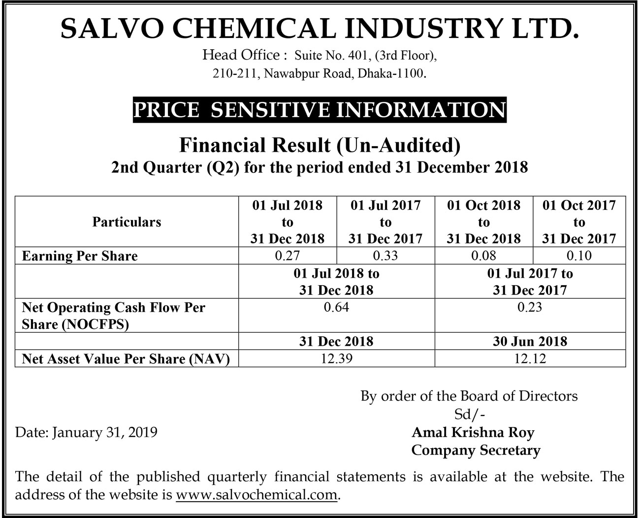 Q2 Financial Statements (Un-audited) of Salvo Chemical Industry Limited