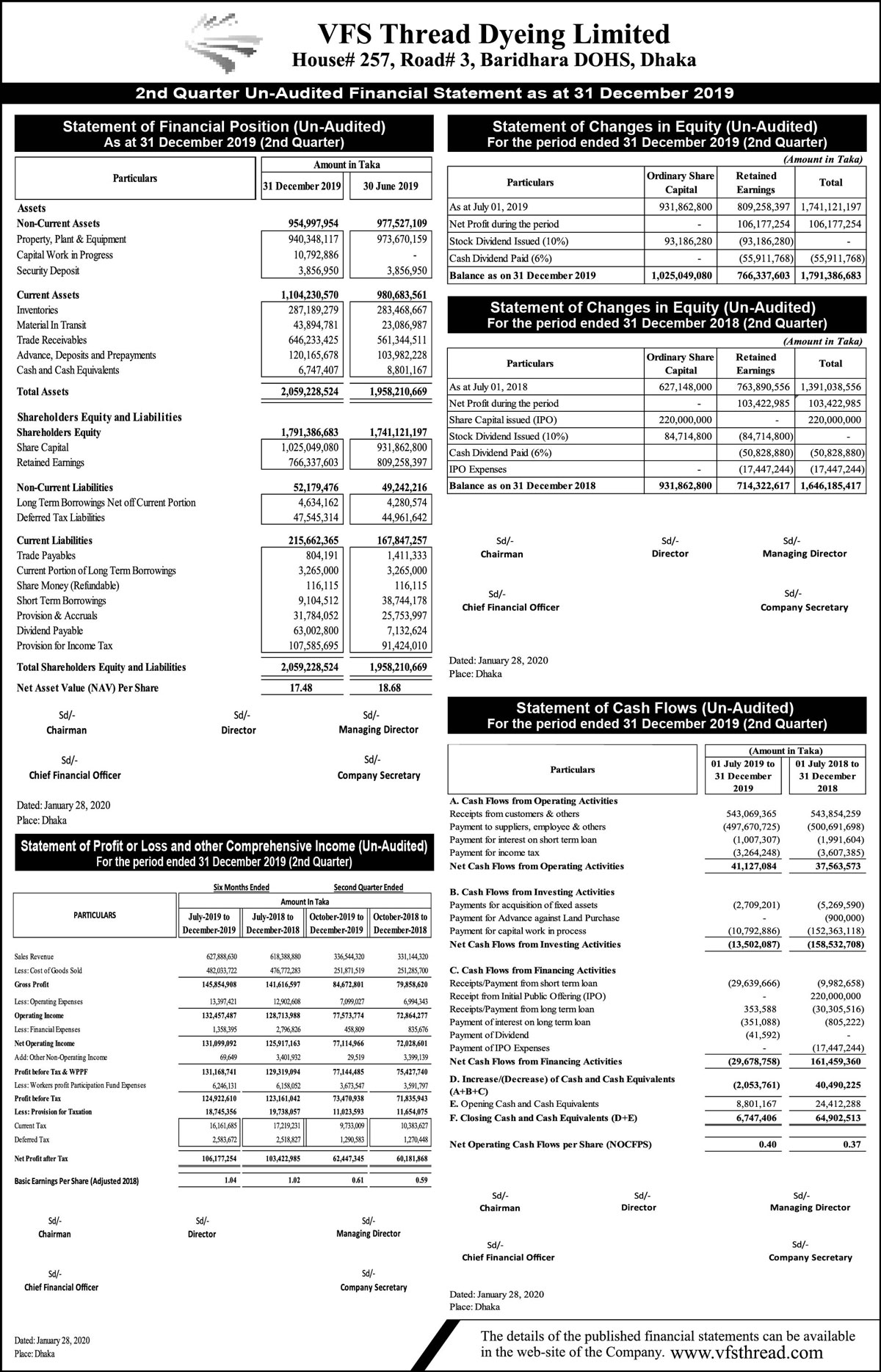 Q2 Financial Statements (Un-audited) of VFS Thread Dyeing Ltd.
