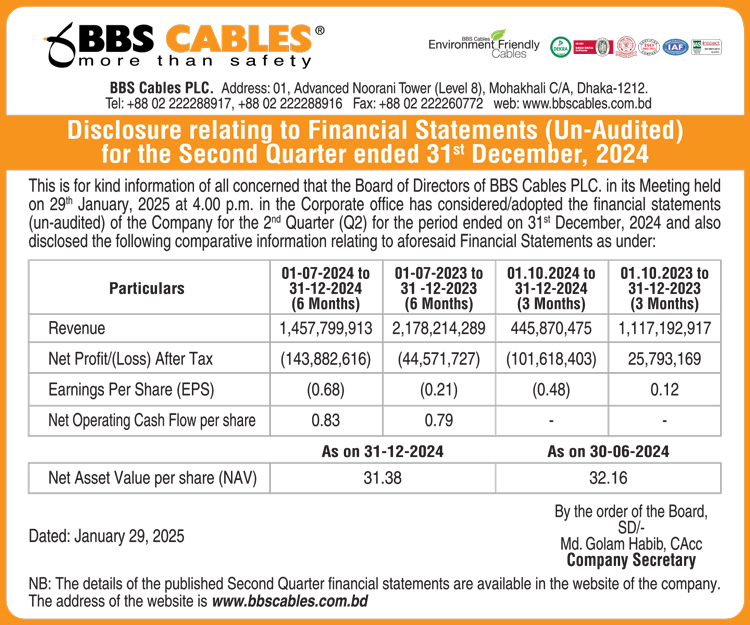 Q2 (Un-audited) Financial Statements of BBS Cables