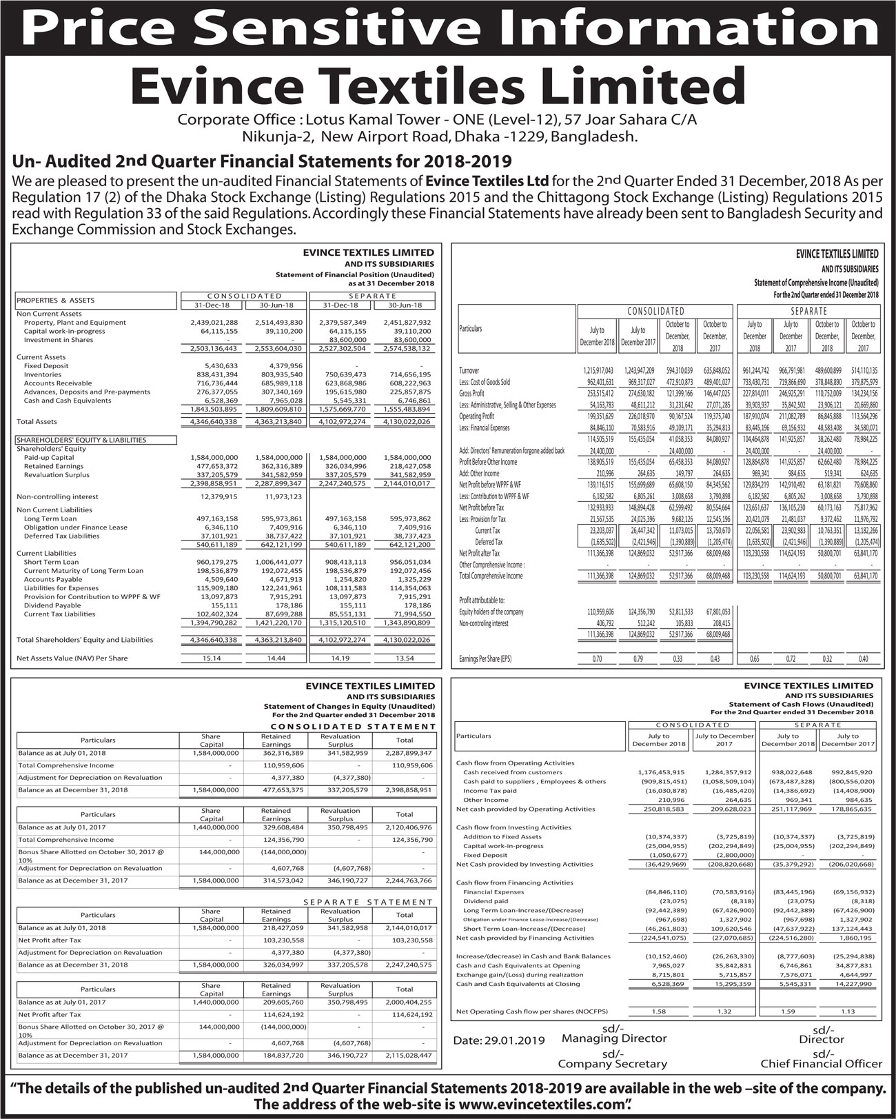 Q2 Un-audited Financial Statements of Evince Textiles Ltd