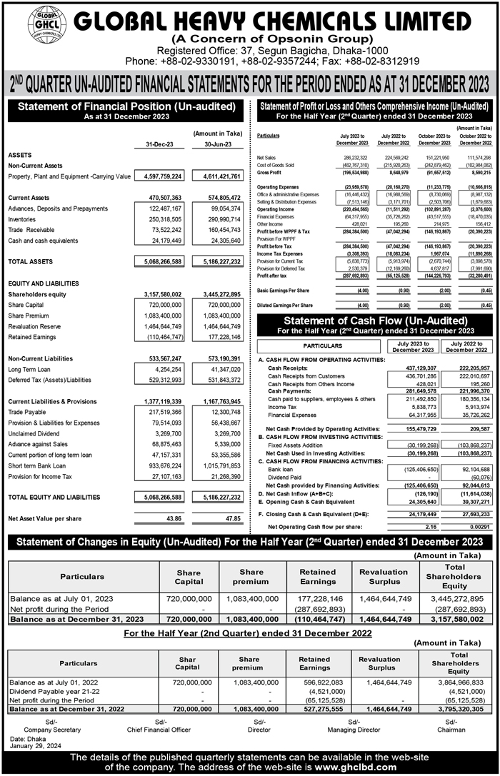 Q3 Un-audited Financial Statements of Global Heavy Chemicals Limited
