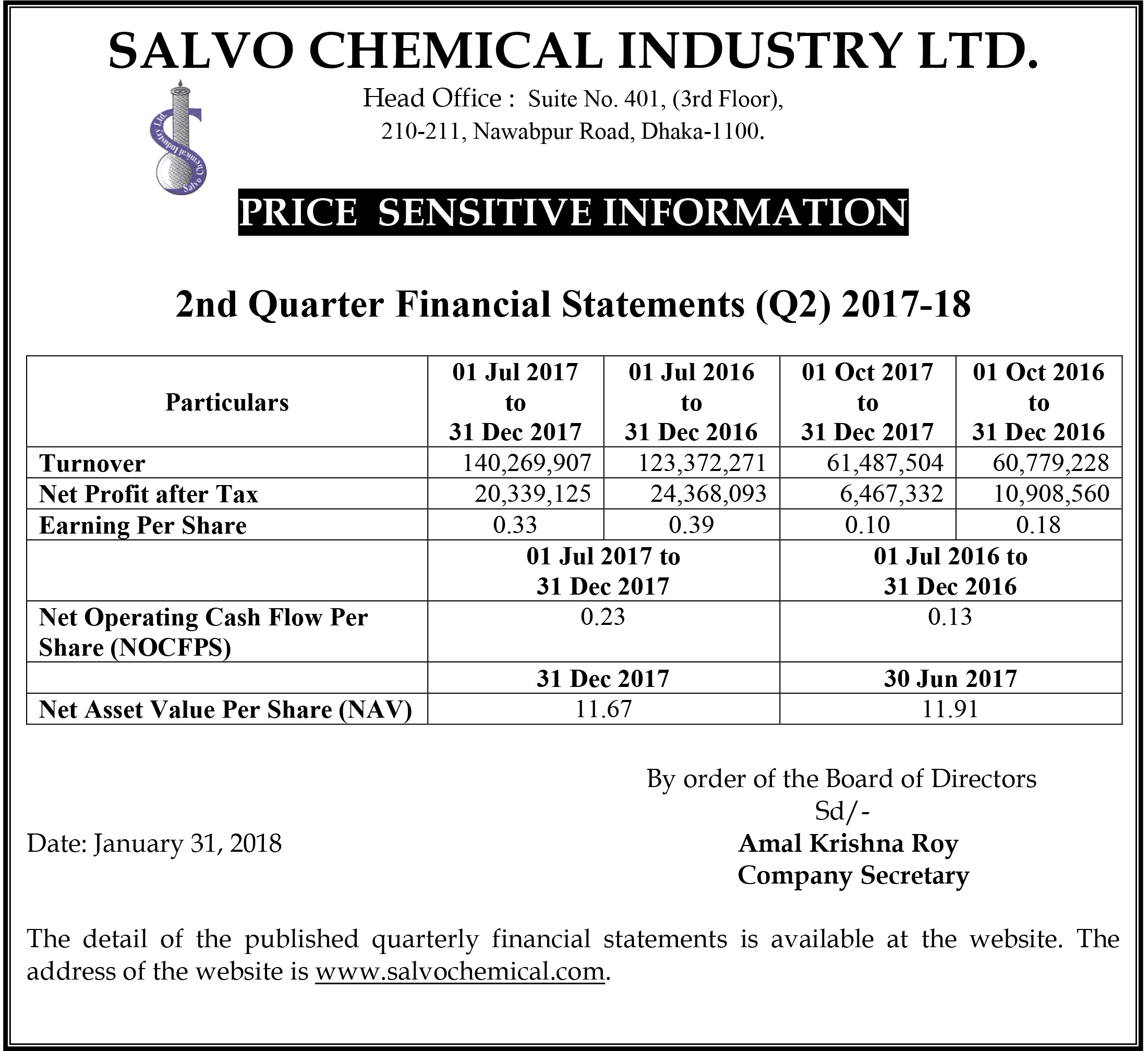 Q2 Un-audited Financial Statements of Salvo Chemical Industry Limited