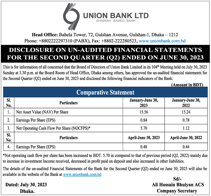 Q2 Un-audited Financial Statements of Union Bank Limited