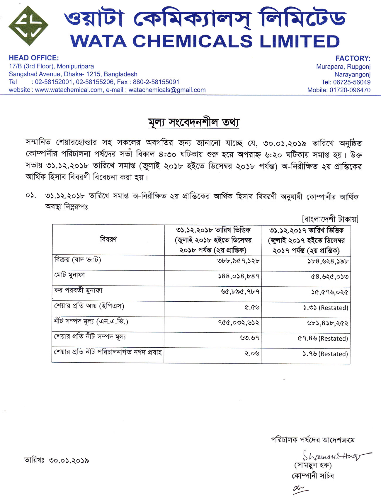 Q2 Un-audited Financial Statements of Wata Chemicals Limited