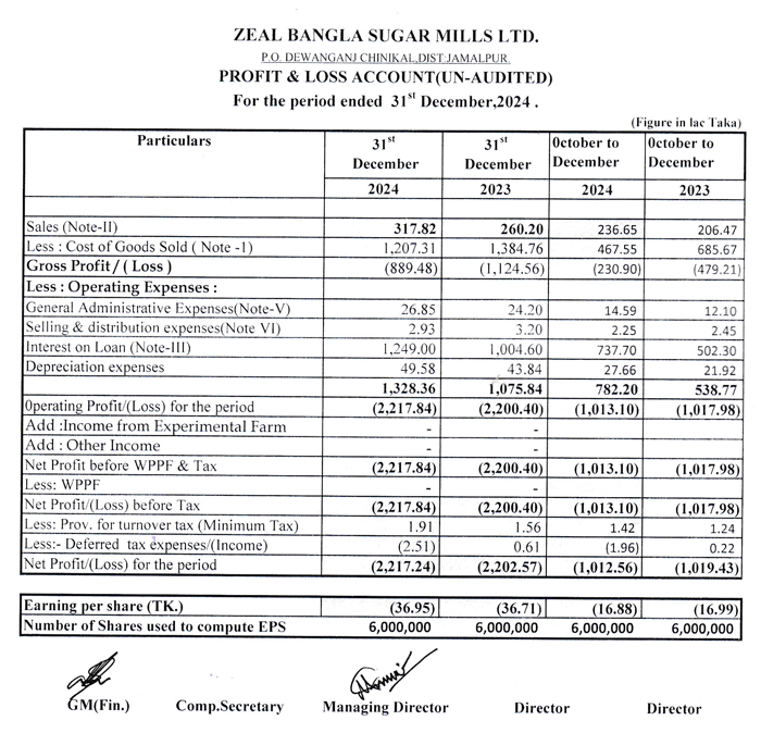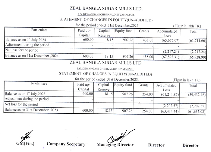 Financial Statements of Zeal Bangla Sugar Mills Ltd