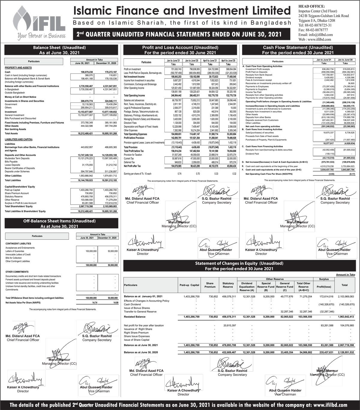 Q2 Un-audited Financial Statements of Islamic Finance & Investment Ltd