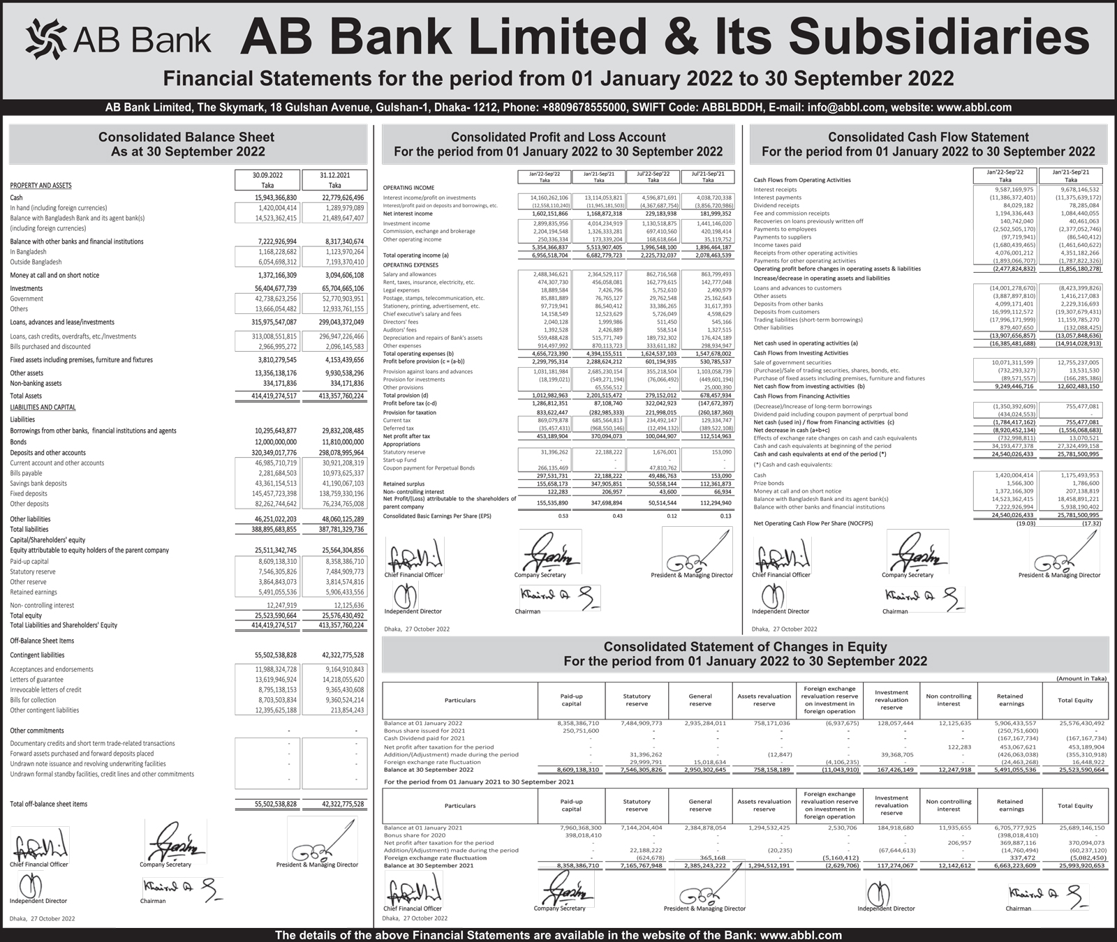 Un-audited Financial Statements of AB Bank PLC. & its Subsidiaries