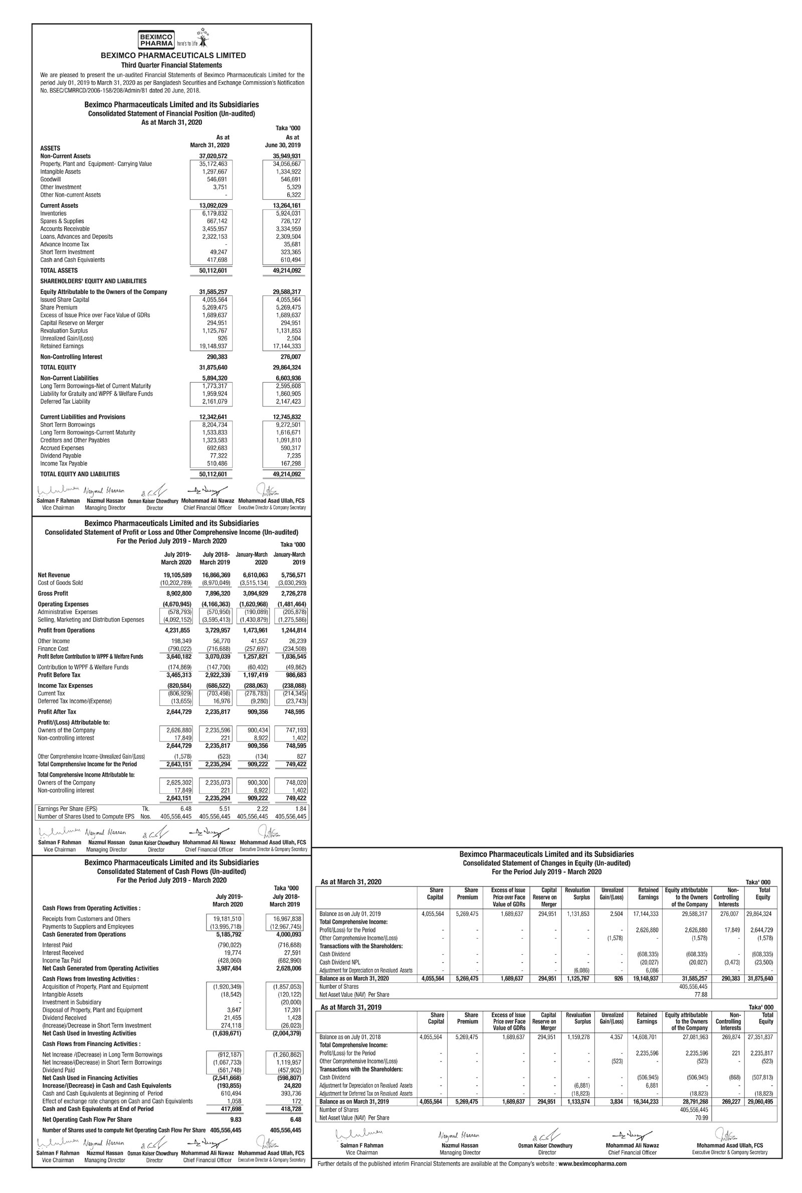 Q3 Financial Statements of Beximco Pharmaceuticals Limited
