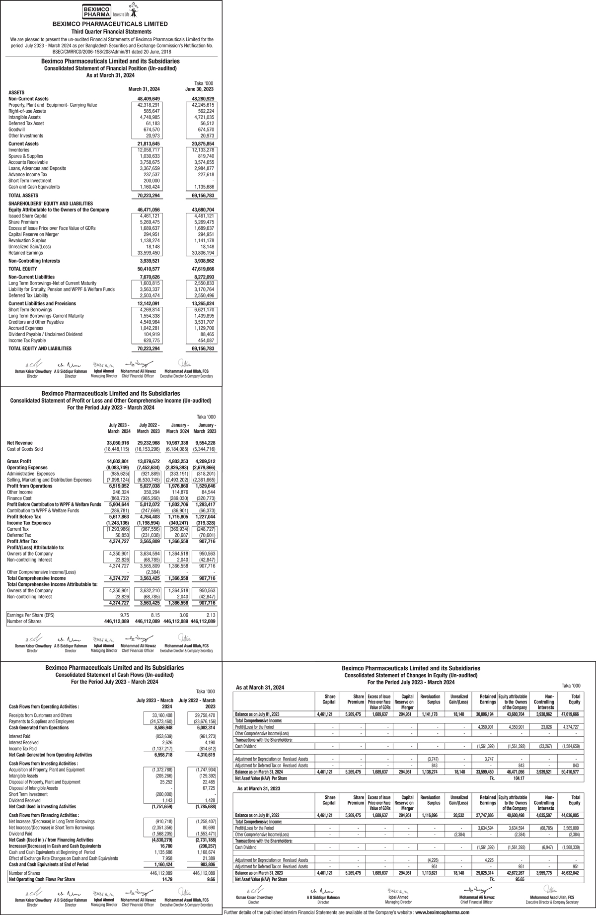 Q3 Financial Statements of Beximco Pharmacuticals Limited