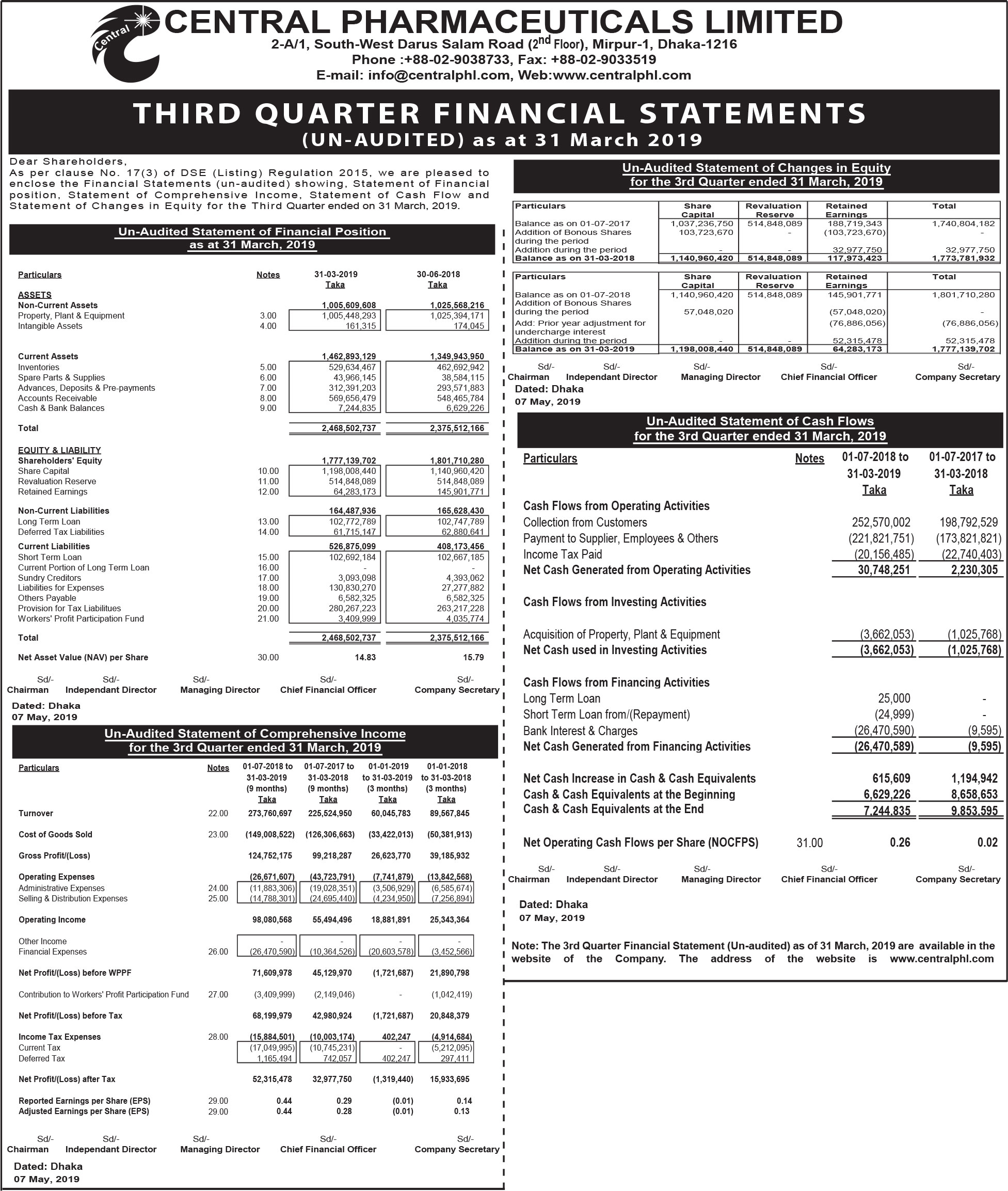 Q3 FINANCIAL STATEMENTS OF CENTRAL PHARMACEUTICALS LIMITED