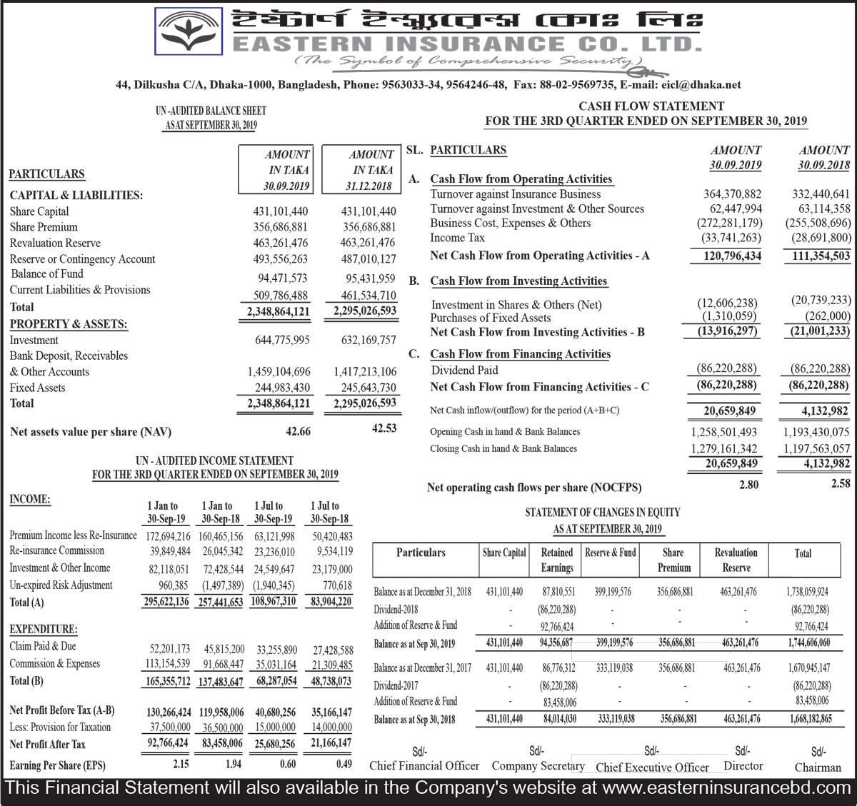 Q3 Financial Statements of Eastern Insurance Co. Ltd.