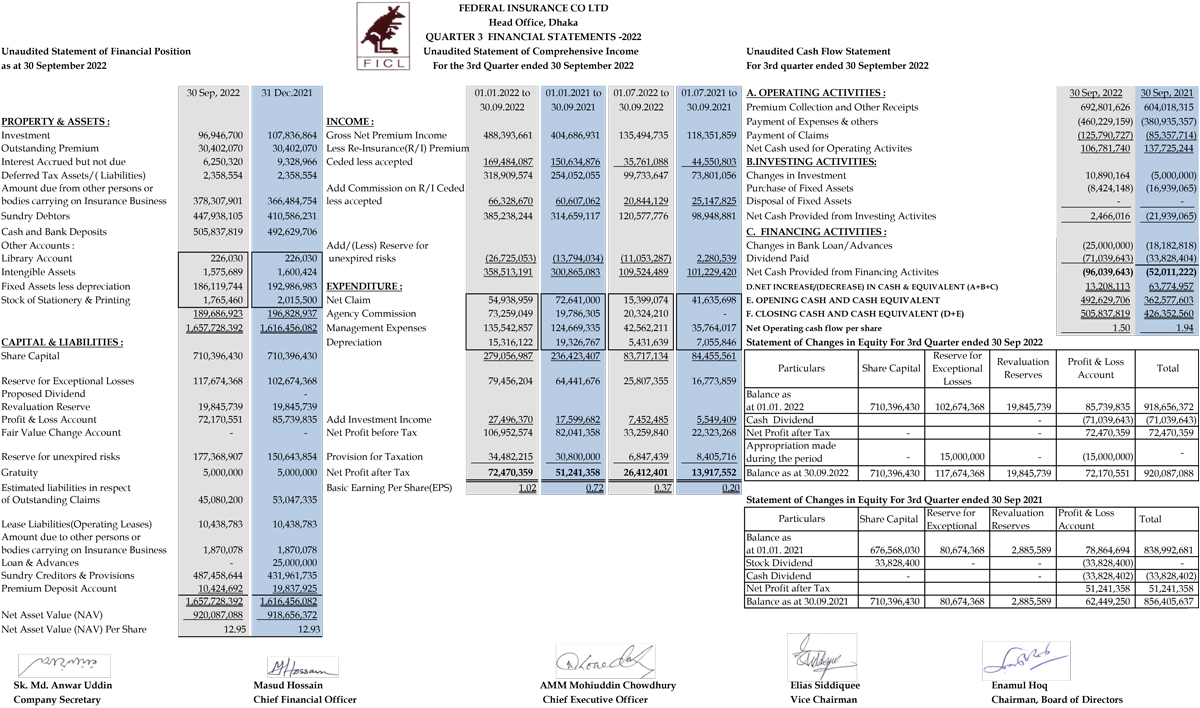 Q1 Financial Statements (Un-audited) of Federal Insurance Co. Ltd
