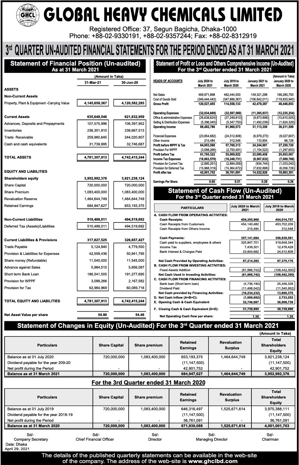 Q3 Un-audited Financial Statements of Global Heavy Chemicals Limited