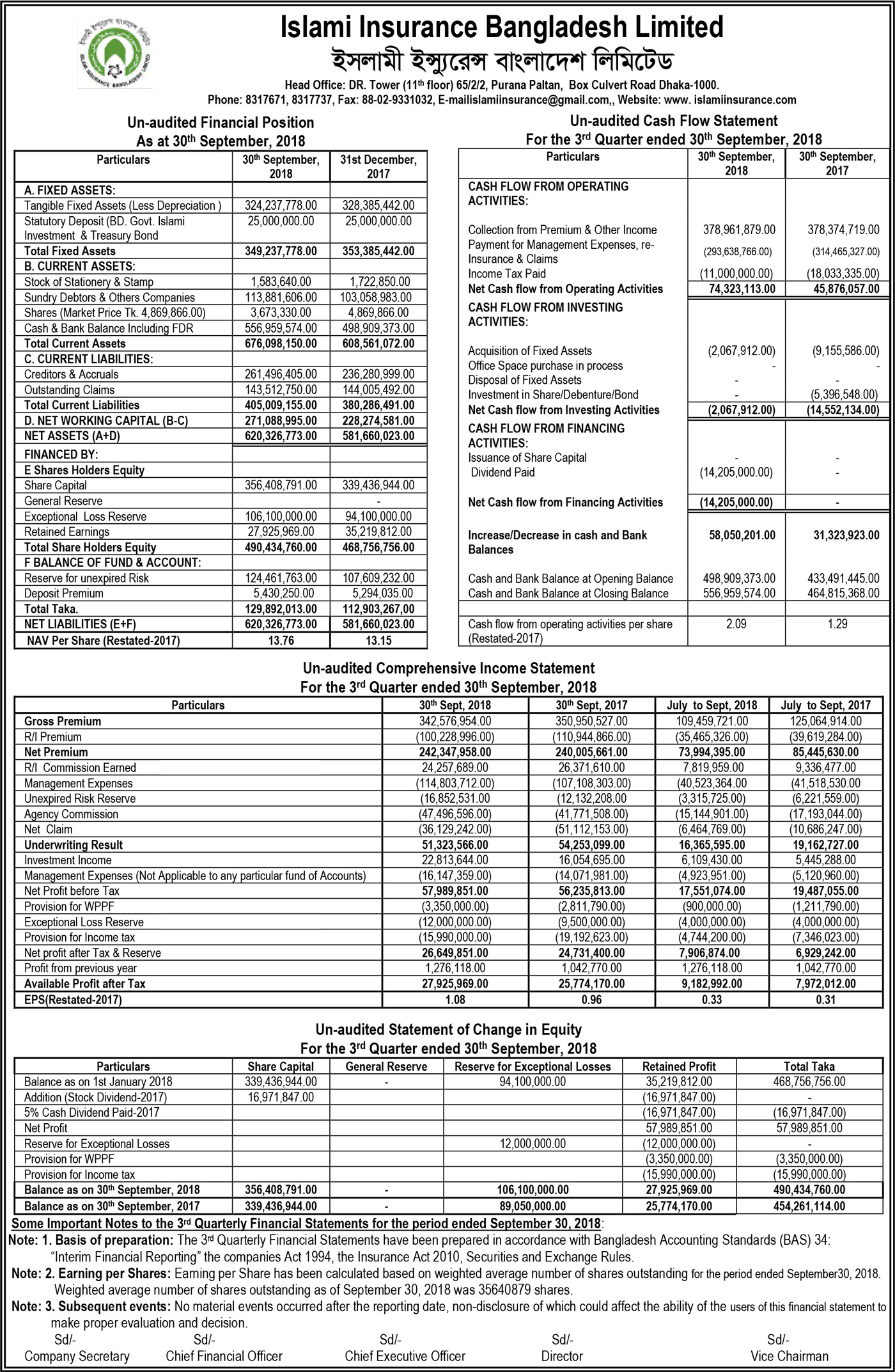 Q3 Financial Statements of Islami Insurance Bangladesh Limited