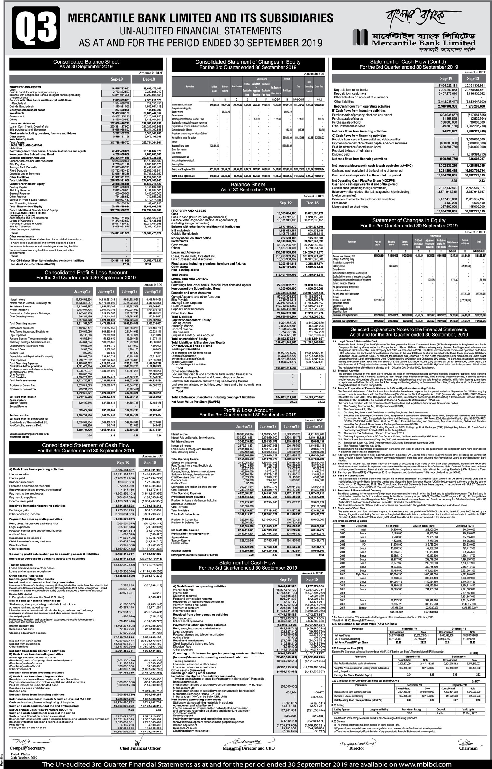Q3 Un-audited Financial Statements of Mercantile Bank PLC.