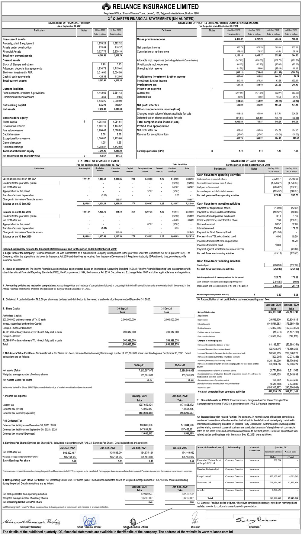PSI & Third Quarter Financial Statements (Un-Audited) Of Reliance One