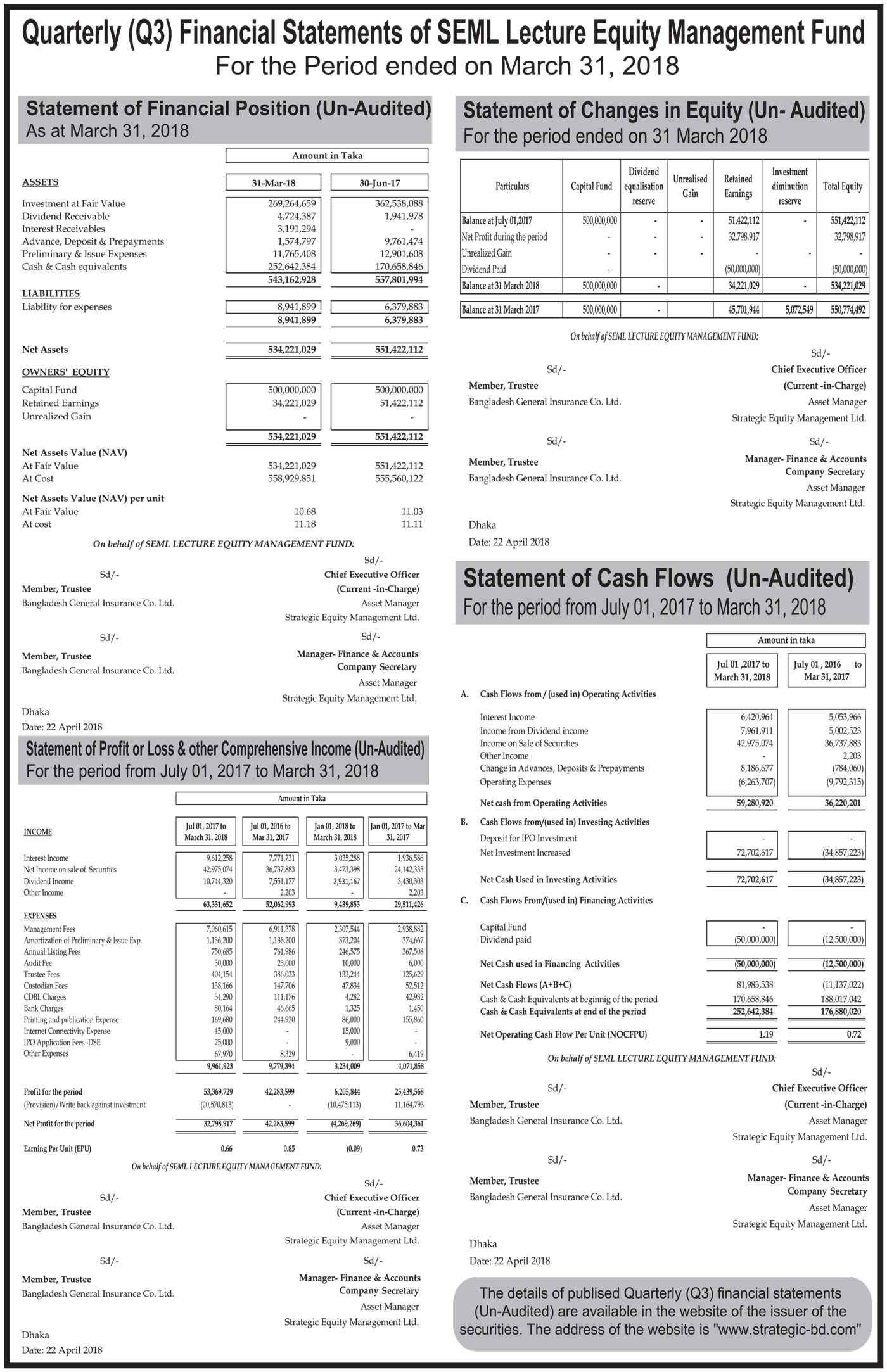 Quarterly (Q3) Financial Statements Of SEML Lecture Equity Management Fund