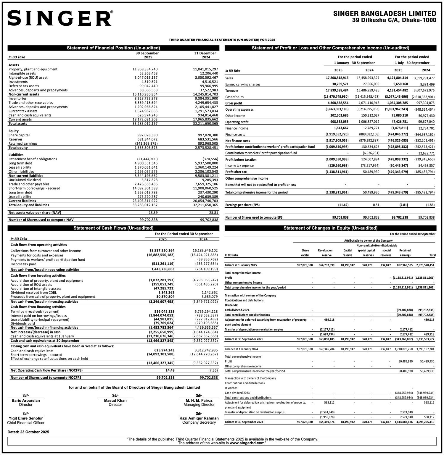 Q3 Consolidated Financial Statements 2025 (Un-audited) LafargeHolcim Bangladesh PLC